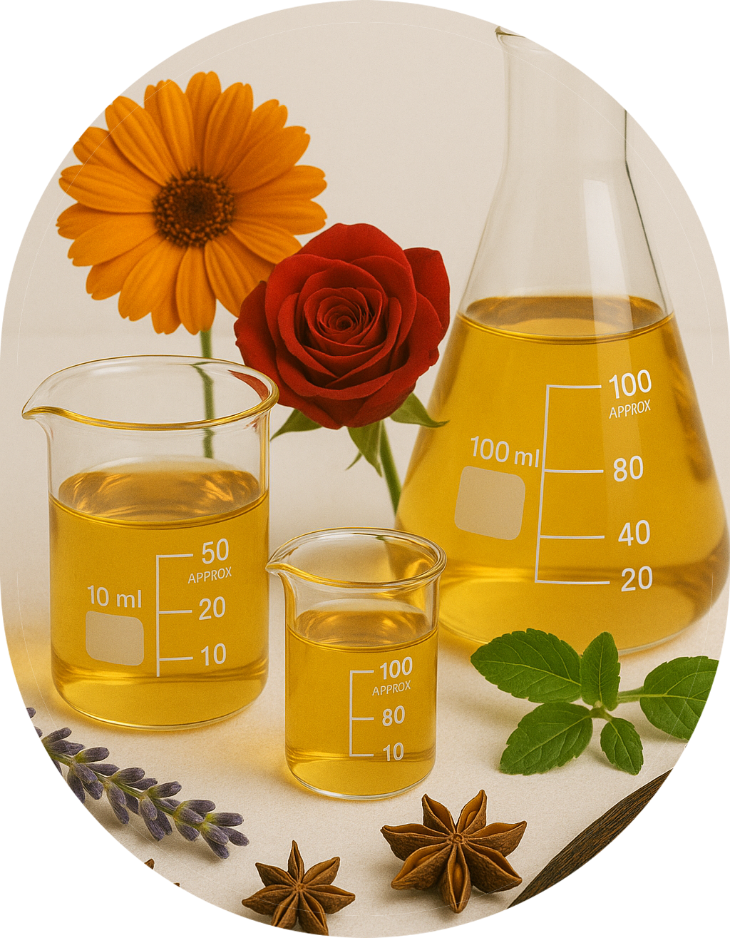 From this foundation, we design three distinct fragrance concepts tailored to your vision. These are blended using only the finest essential oils, rare extracts, and carefully sourced perfumery materials.
